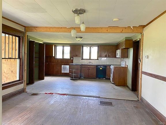 HUD Home. Abstract and survey are the responsibility of the purchaser. Disclosures Attached. Good sized farmhouse with some original woodwork! This rural home has 4 bedrooms upstairs and the downstairs consists of an open kitchen, family room/dining combo, living room, full bath and an office! Enjoy beautiful views of open fields outside of every window and from your large enclosed front/side porch!