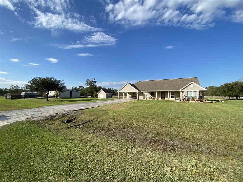 NO FLOODING!! Such a beautiful setting, need a place for your horses and cows? This little piece of heaven for you and your furry little farm animals and includes a barn with 4 stalls and a small efficiency apartment! 6.1 acres of well-manicured property, this home is comfortable with a great floorplan, high ceilings in living featuring stone fireplace and big windows across the back of the house to enjoy the views, living is open to the kitchen and breakfast area with lots of cabinets and counterspace for preparing those meals for gatherings. Spacious primary bedroom with massive walk-in closet that any clothes fanatic will appreciate! Primary bathroom with double sinks and soaker tub and separate shower. Off the primary bedroom is also an office area that can be kept closed off from the rest of the house. The other side of the home holds 2 bedrooms and a shared hall bath for guests. Make your appt today, this home will NOT disappoint! Preapproved buyers ONLY please. Orangefield ISD!