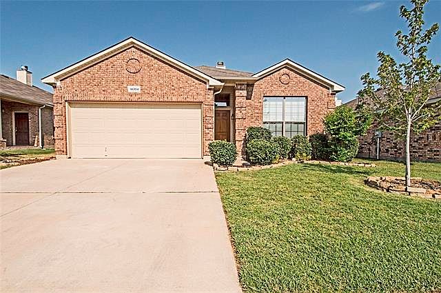 Beautiful 3-2-2 in Haslet.Ready to move in and very clean!Kitchen features granite counter tops, an island, 42 inch cabinets and plenty of counter space.Refrigerator STAYS!Kitchen opens up to the large living area with cozy fireplace. Crown molding and rounded arch ways give this home an elegant upgraded feel. Great back yard with no houses behind. Located in Sendera Ranch with many community amenities and in the very sought after Northwest ISD.