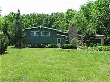 Nestled in the woods far off the street, you'll enjoy the total privacy of the updated, well-designed home featuring gorgeous Kraftmaid cherry cabinets, newer appliances, including a convection oven, hardwood flooring and Amish-made custom built-ins. The open kitchen design with massive counter space also serves as the entertainment center for the adjoining dining center and great room highlighted by a brick wood-burner fireplace. Pella French sliders in the master suite open to a huge wood deck overlooking the 2.5 acres of wood paradise. The walk-out lower level features a sound proof family room perfect for an entertainment center or a teen getaway room. The 2.5 car garage and the 20x12 outbuilding offer plenty of storage. A new septic system is being installed just to make things perfect. Conveniently located in a country setting, this home is a real beauty!