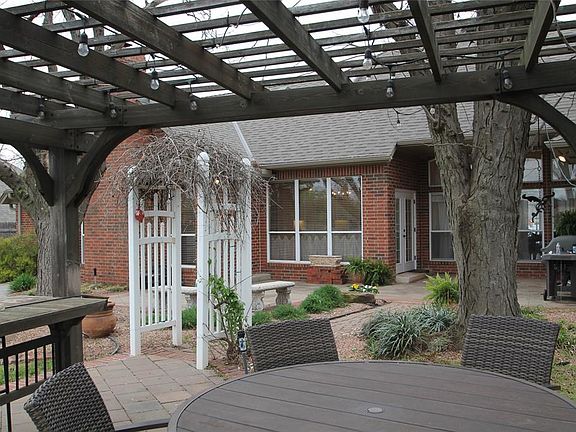 Come discover this rare gem in SE Edmond. Located at the end of a cul-de-sac. It comes complete with 4 bedrooms and 3 updated bathrooms. Oversized formal dining and living rooms are in the center of the home. The updated island kitchen has new quartz countertops stainless appliances a BOCH 3-tiered racks. The breakfast area opens into a second living area with a beamed vaulted ceiling and a brick fireplace. NEW Quartz countertops in the completely remodeled front bath, plus New quartz in the main bath. Remodeled laundry room with new quartz countertop. Wood and tile floors flow throughout the home. From the patio follow the path to a backyard-covered pergola; perfect for warm-weather entertaining. The home is conveniently located from I-35, Broadway Extension, and Kirkpatrick Turnpike.