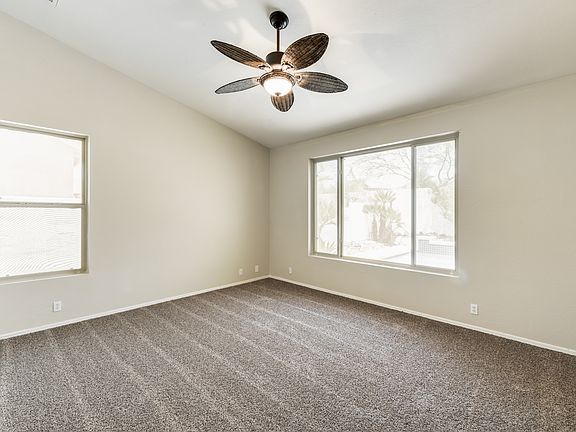 This pristine 3 bed, 3 bath, plus a den home will not last long! Throughout the house, there is fresh interior paint, new carpet, and crisp white plantation shutters that enhances each living space. The formal living room offers exceptional space to host get-togethers with friends and family. Heading into the kitchen, you will be blown away with the modern appliances, ample storage space, and beautiful countertops! Two of the bedrooms share a Jack and Jill bathroom. Inside the master bedroom, you will have room for all of your belongings. Step outside for some fun! Hop into the pool or spa; both are Arizona must-haves! Schedule your showing today!