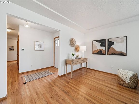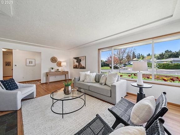 Quintessential Mid-Century Classic on a sunny .22-acre corner lot! First time on the market in over 20 years—pride of ownership shines throughout. Formal entry opens to a bright, south-facing living room and separate family room, both with fireplaces. Spacious kitchen with marmoleum flooring, ample counter space, and appliances included. Newly refinished hardwood floors throughout. Updated primary bath, thermal vinyl windows, and fresh interior paint. Large backyard with patio and gardens. Roof ~15 yrs, gas furnace ~10 yrs. Double garage with opener. A timeless gem! [Home Energy Score = 4. HES Report at https://rpt.greenbuildingregistry.com/hes/OR10236812]