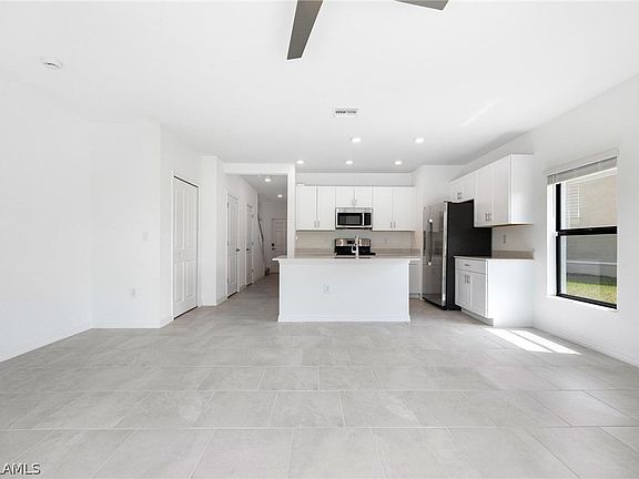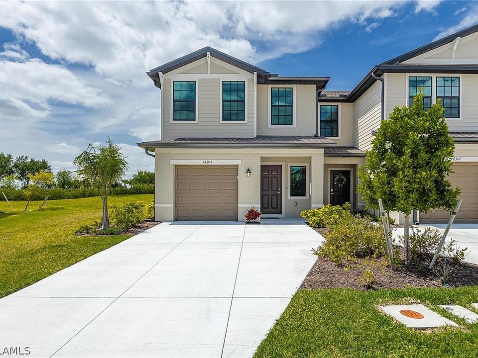This beautiful Avery model townhome is nestled in the sought-after gated community of Portico. The end-unit townhome offers a bright kitchen which features a large island with quartz countertops, white shaker cabinets and stainless steel appliances. The open concept Living Room has an abundance of natural light from the extra windows that the end-unit offers. Also on the first floor is a half bath that is perfect for when you have guests. The home also boasts a one-car attached garage, Impact Windows & Doors and a Ring security system. Upstairs you will find the laundry conveniently located near the 3 Bedrooms and 2 Bathrooms. This unit is a short distance to the Amenity Center where you can enjoy tennis, pickleball, basketball, a fitness center and community pool. Portico also has a wonderful social calendar which offers weekly Food Truck nights to meet neighbors or for those non-cook nights. Portico is located off Buckingham Road in Ft Myers, close to grocery, restaurants and I-75.