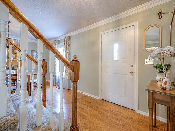 Welcome to this beautiful two-story home situated on a spacious oversized lot on a peaceful cul-de-sac. The well designed layout features lovely hardwood floors throughout the main floor, an open family room with cozy fireplace and loads of natural light leading to the updated eat-in kitchen featuring quartz counters and subway tile backsplash. You will enjoy entertaining in the formal dining room off the kitchen and an extra room on the main floor which makes a perfect office or den. The upstairs primary suite is a spacious retreat with walk-in-closet and en-suite bath featuring double sinks and a separate shower and tub. There are 3 more spacious bedrooms offering plenty of space for family, guests and a home office if needed. This property is situated on a spacious lot with a backyard pergola, large deck off the kitchen, lush landscaping and ample outdoor space perfect for entertaining, gardening and enjoying the outdoor. Close to shopping, dining and easy highway access.