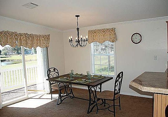 LIKE NEW 2013 PALM HARBOR 3 BED 2 BATH WITH GOLF COURSE VIEW!! A spacious 1675 sq ft of living space, fabulous view of the golf course and Palm Harbor quality make this nearly-new home one of the best buys in the community. It has a sunny living room, formal dining room with panoramic rear view, open kitchen with tile floor, backsplash and trim and upgraded cabinets, master suite with huge closet and private bath with both soaking tub and stall shower, 2 roomy space bedrooms, tiled 2nd bath, rear porch, plenty of parking and a large storage shed. Over 700 homes available at https://www.fourstarhomes.com