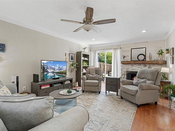 Welcome to this stunning townhome-style unit in the sought-after Sable Ridge community of Aurora! This home boasts an inviting layout with exquisite finishes and plenty of outdoor spaces, making it an entertainer's dream. Enter from the beautiful front patio, perfect for morning coffee or evening relaxation, into the bright and airy living room. Here, large sliding glass doors provide access to the front patio, filling the space with natural light, while the cozy electric fireplace adds warmth and charm. Just off the living room, a versatile dining or sitting room with its own sliding doors to the patio offers seamless indoor-outdoor flow. The main floor also includes a beautifully designed full bath with a jet-action tub, adding a touch of luxury to everyday living. Around the corner, find an open-concept space where the family room, dining area, and gourmet kitchen flow together effortlessly. The family room provides direct access to the front patio.The kitchen is a chef's delight, featuring elegant granite countertops, a stylish cooktop with an overhead hood, a spacious kitchen island with bar seating, and an eat-in nook ideal for casual meals. Venture upstairs to find a sunny balcony and the luxurious primary bedroom suite, which boasts a modern en-suite bath with a walk-in shower for a spa-like experience. The upper level includes two additional bedrooms and a full bath, ensuring plenty of space and comfort for all. The finished basement offers extensive flexibility, with a large combination laundry and flex room, a cozy den or sitting area, a non-conforming bedroom, and a convenient 3/4 bath. Enjoy your private, fenced-in patio, a serene retreat with lush plants and sunlit spots. The home also includes an off-street parking space and is ideally situated close to shopping, dining, and entertainment, making this an oasis of convenience and comfort. This beautiful home truly captures the best of Aurora living—don’t miss the opportunity to make it yours!