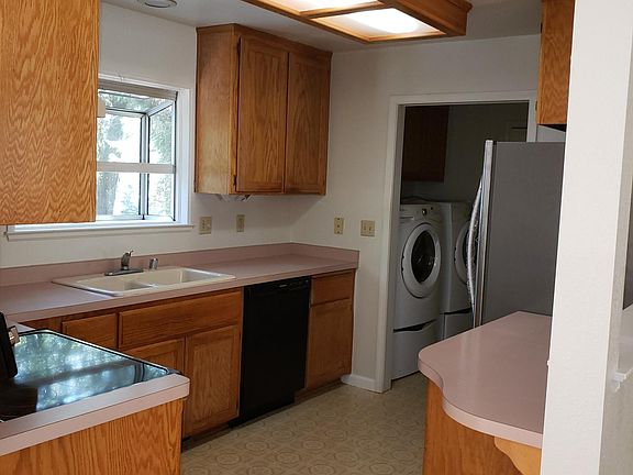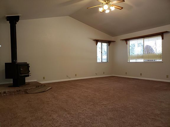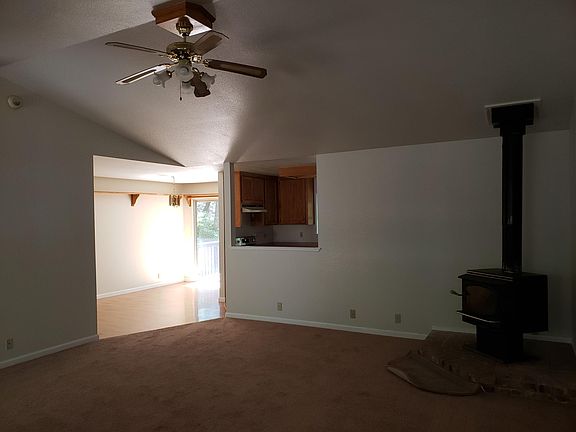 Beautiful setting with an open floor plan and a wood stove. New carpet in living room and bedrooms. There is a 2 car garage and a covered front porch with a deck in the back. Washer and dryer included. Tenants pay all utilities
