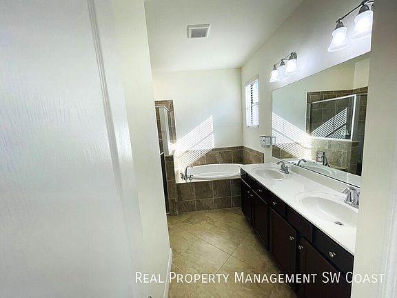 This single-story home in the highly desirable Portico gated community offers an open floor plan, modern finishes, and resort-style amenities, making it the perfect place for comfortable living. Step inside to find a bright and spacious living area with large windows that bring in plenty of natural light. The modern kitchen features stainless steel appliances, granite countertops, custom cabinetry, and a large island with bar seating ideal for cooking and entertaining. The adjoining dining area and family room offer a seamless flow, perfect for gatherings. The primary suite is a private retreat, complete with a walk-in closet and an ensuite bathroom featuring dual sinks and a walk-in shower. Two additional bedrooms provide ample space for family, guests, or a home office. Property Features - 3 bedrooms, 2 bathrooms with a spacious open floor plan - Gourmet kitchen with granite countertops, stainless steel appliances, and an island - Primary suite with walk-in closet and private ensuite bath - Screened lanai overlooking a peaceful backyard - Attached two-car garage and a large driveway - In-unit laundry with full-size washer and dryer - Tile flooring throughout main areas for easy maintenance - Resort-Style Community Amenities - Gated entry with 24/7 security - Resort-style pool and clubhouse - State-of-the-art fitness center - Tennis, pickleball, and basketball courts - Playground and scenic walking trails Easy access to I-75, making commuting effortless. Enjoy being close to top-rated schools, shopping centers, restaurants, and a short drive to downtown Fort Myers and the Gulf Coast beaches.. Community Pool Pickleball Court