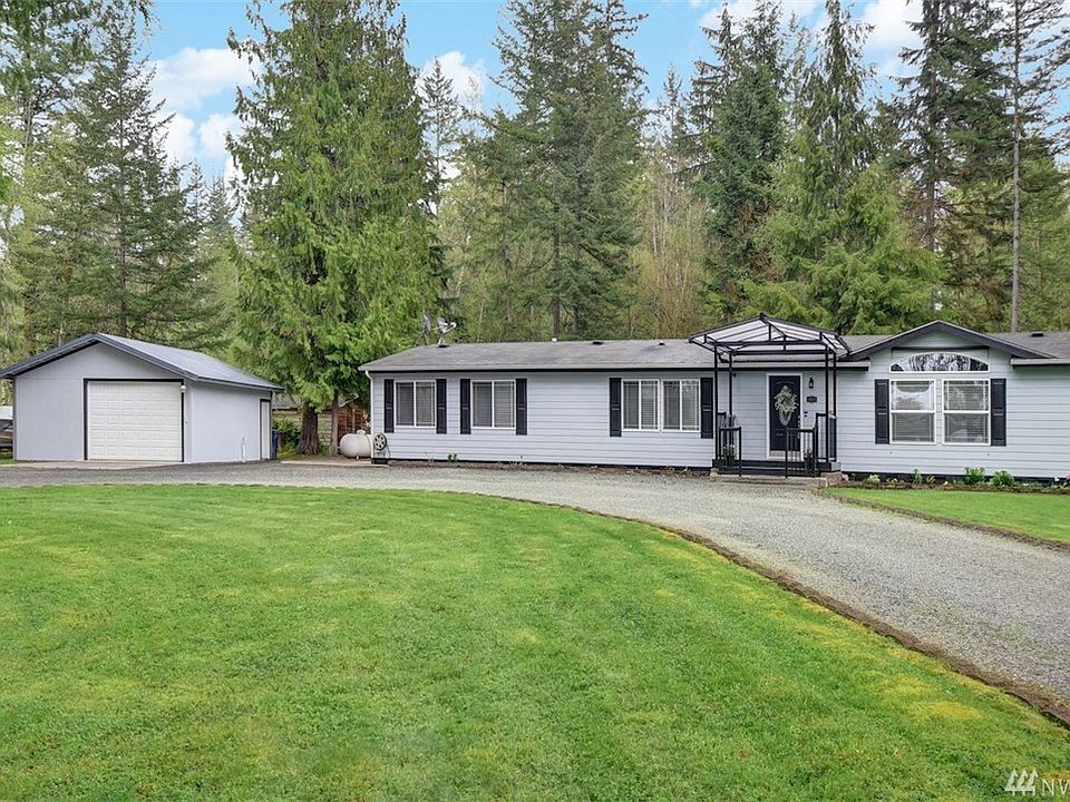 Beautiful country home featuring open floor plan w/remodeled kitchen including SS appliances, gas range, island, large living & dining rm. Cozy living rm that overlooks shy 5 acres yard w/large covered patio, hot tub & firepit. Master suite w/stylish barn doors that lead to remodeled 5 piece bathroom & walk in closet. Two additional nice size bedrooms, full bath, new flooring throughout, 24x20 detached shop/garage, shed, RV pad w/power & septic dump. Come tour this tranquil piece of paradise.