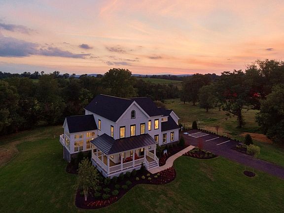 Award Winning, Modern Farmhouse situated on 5+ acres includes Red Barn and is ready for you to call home. This enchanting former Builder Model features a 2 car side load garage plus a 3rd car drive through garage! Take in the breathtaking surrounding views from the wrap around porch, the paver patio, the composite deck, enclosed conservatory or the veranda off of the Master Suite! Be amazed, from the moment you walk in by all of the extra finishes and touches that make this house so desirable. From the beamed ceilings to wall coverings, extensive trim, interior brick walls and built ins galore, this home flawlessly blends classic with contemporary! Private Study, secluded with French doors, on the main level provides a quiet space for work or hobbies. Gourmet Kitchen is a chef's dream with Butler's Pantry, elegant white cabinetry, granite counters and monogram stainless steel appliances. Enjoy all of your favorite meals in the bright sunroom or host guests in the conservatory. Retreat to the spacious Master Suite and relax in the sitting room or in the tranquil Master Bath with luxurious quartz counters and stunning tile. The walk out lower level is fully finished with Media Room, exercise room, expanded rec room, half bath plus a guest suite with full bath! Quaint community is still close to shopping, dining and commuter options!