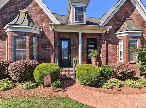 Beautiful, European, all-brick w/stone accents, designed row house, built as s.f. home. Enter through custom lead glass door to gleaming hardwood flrs.; heavy crown moldings, family rm. w/gas fireplace, master w/on-suite and 2 additional bedrooms on main w/ full bath. Dining rm., kitchen w/granite counter tops and tiled back splash; plantation shutters; window treatments; custom lighting throughout; laundry on main; upper floor has huge media rm. w/custom high end projector, receiver & large custom screen. Huge 4th bdrm. w/full bath & sitting area used as office or second master. Loads of storage! Covered terrace overlooking tiered fountain is nestled in a brick walled & wrought iron gated backyard w/lush landscaping & accent lighting, in-ground pool, outdoor kitchen w/brand new grill, outdoor refrigerator & outdoor speakers. Lawn maintained through HOA. Convenient to I-485, quick access to Mint Hill, Matthews & Charlotte. Serene, quiet and move-in ready...WELCOME HOME!