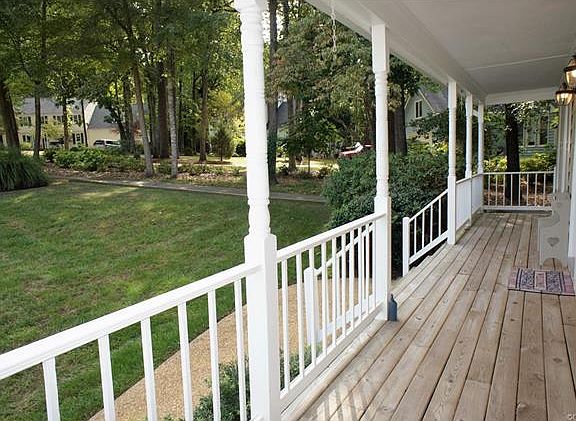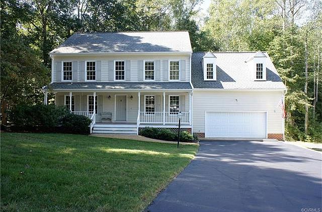 Walk to the Water! You're going to love this 4(+) bedroom, 2.5 bath Cul-de-sac home on .57 acres in the highly sought-after Chimney House neighborhood of Brandermill, with miles of walking trails, pools, playgrounds, golf and more! Just minutes from highways, shopping and schools, you'll enjoy the serenity of its Full Country Porch and its Deck that backs to a protected wooded area! The extra-wide foyer welcomes you with beautiful hardwoods and crown moldings throughout the front rooms, plus charming details like pocket doors! The Family room boasts a Wall of windows, Brick fireplace, Built-in bookcases & New carpet and Opens to a Vaulted Eat-in Kitchen with New Stainless appliances, Gas cooking, Rear stairs, Counter seating, Recessed and Skylights and HUGE windows overlooking the naturalized backyard. Upstairs has ALL New Carpet, Vaulted Master suite & bath w/double vanities, 3 bedrooms w/CFs, Full bath and a large, unfinished room for walk-in storage or finish it as a playroom/office or 5th bedroom. Meticulously maintained, featuring an Oversized 2 car garage, Paved drive, New 50g water heater, Upgraded Bath lights/fixtures, Newer Roof & HVAC and a transferable home warranty.