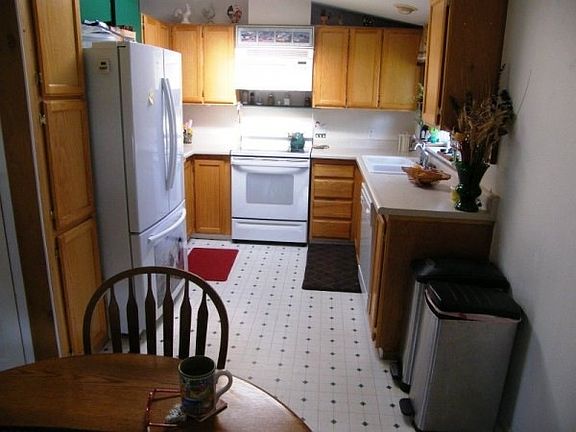 This 3 bed 2 bath home is located in a beautiful Sr park in NE Portland. This home is on the outer perimeter of the park with views of Mt St Helens and Mt Hood from the back deck. Living room has Pergo type flooring with carpet and vinyl in the other areas.... The 3rd bedroom/office really does have a granite tile floor. The dining area has 2 pantry's for lots of extra storage. Kitchen has range, dishwasher and built in microwave. Lots of cabinets and counter space. Master bedroom has private bath with both a soaking tub and walk in shower. It also has double closets in the master. This home has 4 ceiling fans along with central air. There is additional parking for 2 more cars in the side by side driveway.