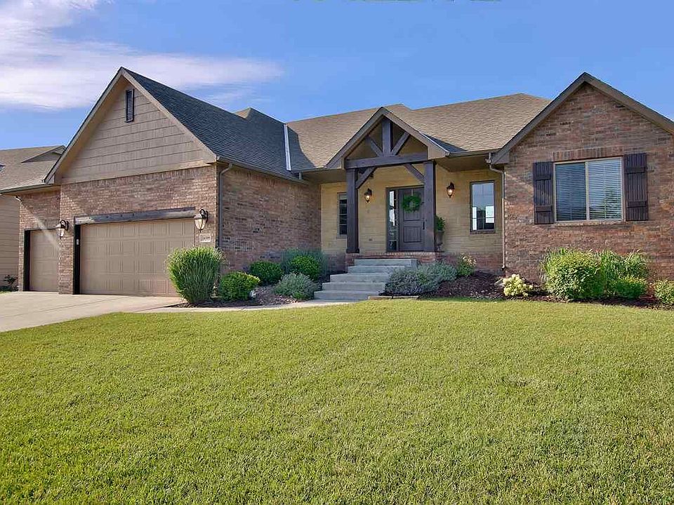 *** Proudly offered by The Ames Real Estate Group, a part of Keller Williams Signature Partners LLC - For more information visit our website at www.searchwichitaks.com or call (316) 807-4946 *** Andover Schools! This beautiful home in Gardenwalk is not one you want to miss! Just like new and completely move in ready, this home is fully loaded with all of the special features and extras you are looking for. You are going to love this home from the minute you step on to the wide and welcoming front porch. Fantastic open floor plan with beautiful hardwood floors, wood beam & tray ceilings, upgraded lighting and fixtures, granite counters throughout, custom wood work, and tons of windows that fill the space with bright, natural light. The wide open kitchen is GORGEOUS with granite counters, custom cabinets, high end stainless steel appliances, and a huge center island with eating bar. The garage entry is conveniently located in the mud room just off the kitchen for easy unloading. The spacious living room features a tray wood beam ceiling, giant windows over looking the back yard, and a beautiful stone fireplace. Split bedroom plan provides privacy in the luxurious master suite with bay window and a spa like master bath that includes dual vanity, deep soaking tub, and custom tile shower. Also on the main floor is 2 additional bedrooms, 2nd full bathroom, and laundry room. Down in the walk out basement you will find a HUGE family rec room with another gorgeous stone fireplace and enough space for a tv area, game area, and more. Don't miss the awesome and over sized wet bar kitchenette! There's also two more bedrooms (that's 5 total bedrooms!), 3rd full bathroom, and tons of extra storage space. Sitting on a large over 1/4 acre lot, the back yard has both a covered deck off the dining room and large patio off the basement rec room, for easy grilling upstairs or down! The in ground sprinkler system with irrigation well makes it easy to keep the grass lush and green without spending a fortune on water. With so much space inside and out, this home is perfect for entertaining, hosting large family gatherings, or simply relaxing with family and friends. Located in a small, quiet community with beautiful custom homes, friendly neighbors, swimming pool, and playground. Conveniently close to everything - dining, shopping, entertainment, schools, and easy access to K96. What more could you ask for! This stunning home with top of the line finishes, loads of upgrades and special features, amazing neighborhood, and perfect location, has everything on your checklist. Don't miss this opportunity - call today for your private showing!