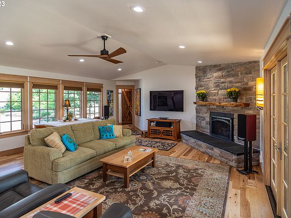 Welcome to the enchanting North Umpqua River! This captivating riverfront property spans 3.4 acres & offers an unparalleled living experience w/breathtaking river views. Completely remodeled home - no detail has been overlooked! All new electrical system, plumbing, siding & insulation, everything has been meticulously upgraded. As you enter, you'll be greeted by the warm hickory hardwood floors that flow thru-out the home. The heart lies in the gourmet chef's kitchen, boasting solid walnut cabinets & 2 types of quartzite counters that exude elegance & style. The spacious island provides ample room for culinary creations & a delightful entertaining space. Equipped w/top-of-the-line stainless steel appliances, including a commercial 6-burner gas range, preparing meals will be a pleasure. The French wood windows & doors bathe the room in natural light, creating a bright atmosphere. For those w/a passion for wines, the butler's pantry will be a delightful addition w/maple cabinets, wine chillers, butcher block & granite counters - perfect for your favorite vintages. The bathrooms are true masterpieces that showcase the home's craftsmanship w/custom tile showers, elegant tile floors & the freestanding jetted tub in the master bath provides a spa-like experience. The master suite also features a spacious walk-in closet w/maple built-ins & the custom barn doors add a rustic charm. The large laundry room, equipped w/maple cabinets & stainless dog wash makes keeping your home clean & tidy a breeze! Embrace the captivating beauty of the North Umpqua River from the expansive 800 sqft deck, adorned w/stainless cable railings for an unobstructed view & custom copper & brass sconces that create a magical atmosphere to unwind in the tranquility of your surroundings. This riverfront sanctuary offers the best of both worlds - a modern masterpiece nestled in the lap of nature. Let the soothing sounds of the North Umpqua River & the exquisite features of this home capture your heart.