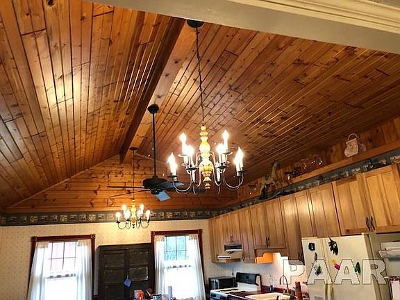 Own your own mini country home. Enjoy the wrap around covered porch facing south & east. Bright sunny bow window, vaulted wood ceilings, Hickory cabinets & wood floor in the updated kitchen. 5 apple & 1 pear tree. Large yard for a garden. The huge Morton building has a loft for storage & 3 cars. 2nd bath has a greenhouse window. Main level laundry. Appliances include, work, but not warranted. Original wood floors upper bedrooms. Sold as-is!