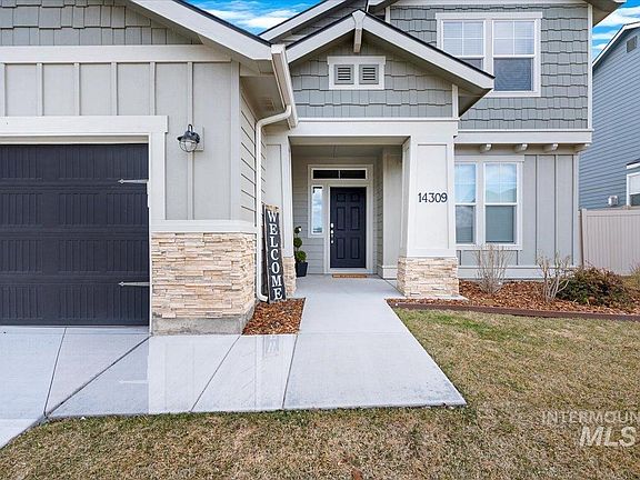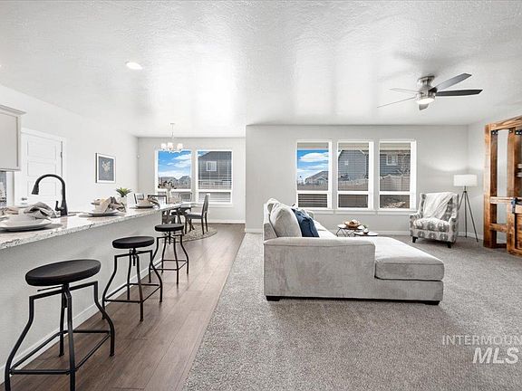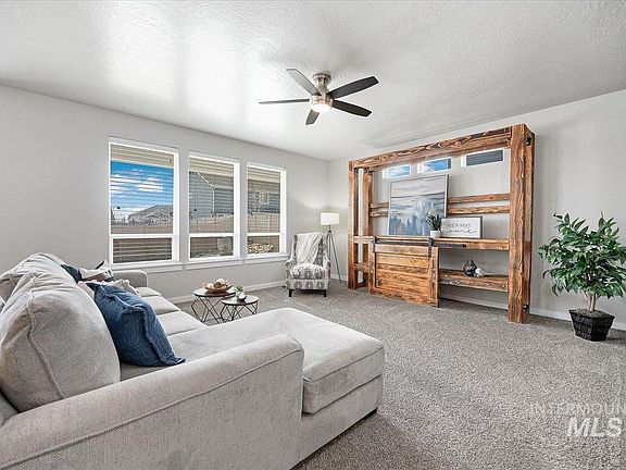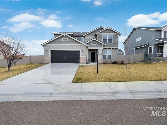 This BETTER THAN NEW home has been impeccably maintained and is move-in ready! Perched upon one of the highest points in the neighborhood, this home offers breathtaking views of the Boise Foothills and more. Walk in and enjoy the open concept with a main floor bedroom/office and half bathroom. The kitchen boasts high end finishes including granite countertops, stainless steel appliances, large walk-in pantry and an oversized island. Walk upstairs and be greeted by a second living/bonus room. The primary bedroom will be your oasis including vaulted ceilings, on-suite with dual vanities, soaker tub and a closet of your dreams. Down the hall you'll find two more bedrooms with an additional bathroom and same floor laundry. Large three car garage with a deep stall for your favorite toys, workout eq. or extra storage. Enjoy the perks of a new build with less things to do! It includes blinds, remote activated ceiling fans, backyard landscaping and more!