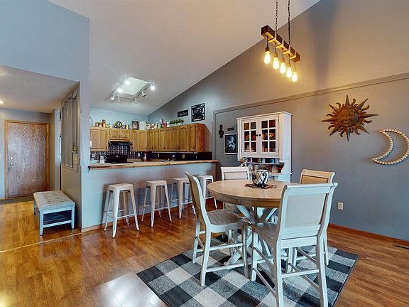 Picturesque views of the City and the ease of condo living in SW Minot! This 2 bedroom condo boasts gorgeous views of the Magic City, while maintaining an open-concept layout that's perfect for hosting. The main floor features a spacious entry just off the kitchen. The kitchen has ample cabinetry and a breakfast bar which is open to the dining area. Vaulted ceilings lead you to the living room which is complete with picture window and a glass door to your covered deck. There's one bedroom on the main that overlooks the City and a full bath. Heading downstairs to the walk-out basement you will find the second bedroom and a 3/4 bath. There's a family room with wood burning fireplace and sliding glass door leading you to an outdoor patio. The storage room is complete with laundry and lots of space to stow your unneeded items. The central location of this home is second to none, and the Hunters Ridge Condo Association has been a sought after development for years. See this one for yourself and schedule a showing today!