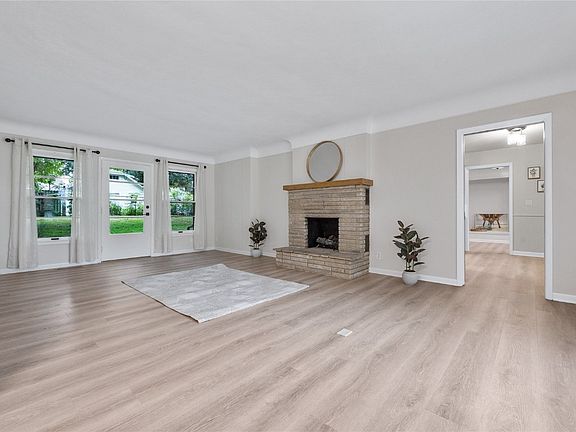 New flooring is included throughout the house with LVP flooring in living room, bathroom, hallway, bonus room and kitchen and carpeting in bedrooms. A separate spacious laundry room with washer and dryer is accessed off the kitchen. The large backyard is shaded and is waiting for new owner to customize with their dream outdoor setting.