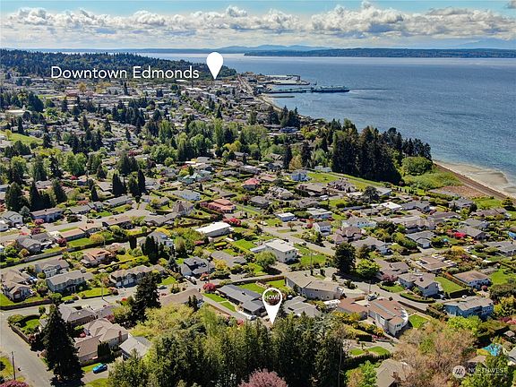 Lovely mid-century home tucked away on a tree-lined lane & shy half-acre storybook setting in coveted seaside Northstream neighborhood. Western views of Sound, Olympics, passing cruise ships & glorious sunsets. 4 bedrooms, sunroom, family room + rec room. Near downtown Edmonds, Ferry terminal, waterfront, marina, town center, Farmers market, train station (30 min stress-free ride to downtown Seattle). Over $100k in recent improvements. Beautiful hardwood floors. Vaulted ceiling. 2 fireplaces. West-facing picture windows. Full-length entertaining deck & separate pavered patio. Arboretum landscaping, a true gardener's delight, with raised garden beds & terraced rock garden. Detached, oversized garage with heated workshop + 2 car carport.