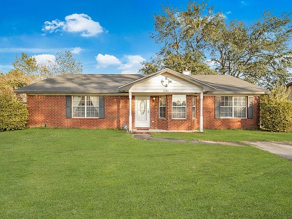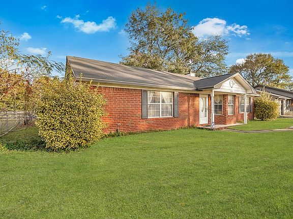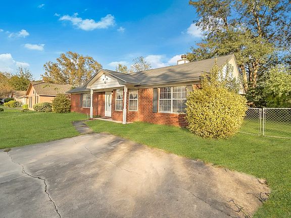 Check out this move in ready home in the established neighborhood of Eagles Landing! The perfect starter home. This house features an all brick exterior with laminate wood plank flooring throughout with ceramic tile flooring in the kitchen, laundry room, and bathrooms. In the living room, you'll find a brick wood burning fireplace, bay window for natural light, and a storage closet. The kitchen has wood cabinetry with laminate counter tops and white appliances. Off the kitchen there's a large guest room with a walk-in closet as well as a large laundry room. The primary bedroom is spacious with a large closet and single vanity and tub/shower combo in the bathroom.