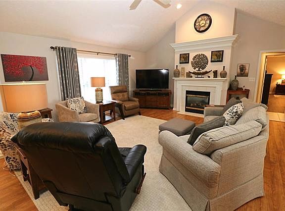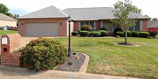 One owner 3 bed, 2 bath brick ranch built by JIMMY KASTER offers all the upgrades! Extra deep 2.5 car attached garage with utility sink, newly fenced back yard, over sized covered patio area, professionally landscaped by Kraft. Large grand entry with columns into the great room with gas fireplace, vaulted ceilings, crown molding, plant ledges and hardwood flooring throughout this area and down the hallway. The master suite offers a walk-in closet, tray ceiling with fan, new wood floors, French doors leading to a covered porch, totally remodeled full bathroom with separate tub and shower and double bowl vanity sinks. The laundry located off the hall entry from the garage has a built-in counter and efficient use of space with hanging rods and built-in ironing board. The kitchen is open to the front great room and back bonus room. You'll find a ton of brand new quartz counter space! There's a large center island seating 2 AND long bar seating 3-4, planning desk area and brand new darker gray metallic appliances and tile backsplash. These NEW kitchen appliances are included in the sale. The long kitchen bar opens to a bonus area with vaulted ceiling surrounded by windows and light. This bonus area has French doors opening to the over sized covered patio, a built in cabinet with counter and currently staged with a large table, but would easily accommodate a pool table, extra family room area, exercise room or large office. A formal dining room with
