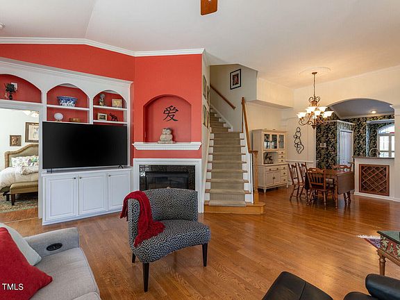 Must See! Well maintained and private end-unit townhome in prime N. Raleigh location near Shelly Lake park. Open floor plan with main level primary suite. Two large BRs up and an office loft. Plantation shutters, laminate wood-look floors, tile, and Berber carpet. Dining room plus eat-in-kitchen. Expansive kitchen with island and gas range. Step onto back stone patio and follow path to private Zen garden for relaxation and bird watching. Large walk-in floored attic, w/Solar exhaust fans in both attic spaces. FP w/blower conditioned every 2 years. Roof 2023; H2O heater 4-years old; Heat and AC 2001 with regular service contract; new motor in AC in 2024. New garage door opener and spring 2023. Two-car garage, plus room in driveway for add'l parking. Conveniently located next to visitor parking and near mail kiosk. Security system wired. Refrigerator and Ring Doorbell convey Stained glass in kitchen window DOES NOT convey. Some furniture for sale.