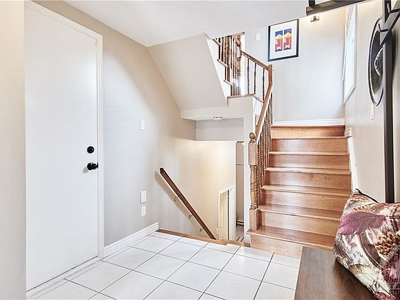 Look no further! This END unit townhome has what you are looking for. Book your showing today! Located in the heart of a family friendly community in a traffic calmed cul-de-sac. Steps away from a pathway network that leads to the Fallingbrook Falls. Spacious foyer as you enter. Take your beautiful hardwood staircase that continues into the living room and dining room. The large East facing eat-in kitchen is a perfect sunrise filled start to your mornings. Deck located off kitchen. The well appointed West facing front balcony captures stunning sunsets to unwind in the evening. The living room is complete with a wood burning fireplace and looks over the dedicated dining room. Primary bedroom with a walk-in closet and renovated Ensuite. Two additional bedrooms with 4 piece bath. The unique basement makes an awesome family gathering space with its 12 foot ceilings. PRE-EMPTIVE OFFER RECEIVED-PRESENTING AT 6:40 P.M. MARCH 27th.