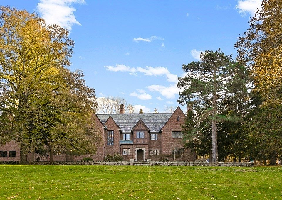 Set in the estate area of Brush Hill Rd., this spectacular 1929 sun-filled English Tudor with guest house will impress you the moment you pull in the stunning front gates! Minutes from Boston, you will feel transformed to the English Countryside as you experience over 4 acres of formal walled gardens and open space abutting 23 acres of conservation land. This property stands out as one of Milton's finest architectural examples of English Tudor, featuring a grand staircase leading to 6 bedrooms with marble baths, welcoming entry hall, step down living room with stone fireplace and beamed ceiling, sun-room, paneled library with fireplace, elegant English style gourmet kitchen featuring stainless appliances, expansive island, breakfast room, wet-bar, pantry, mudroom and family room. Exquisite custom lighting, doors, windows, and molding detail are found throughout this home! You won't want to miss the third floor play room, lower level home gym and squash court! A rare opportunity