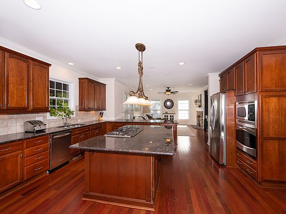 ONE OF A KIND ALL BRICK HOME! 600 bottle wine cellar. Island kitchen w/ granite, TONS of counter space, custom COFFEE bar, butler's pantry w/ stone accent & 2 pantries. Open concept. Bonus & Theater Rm on 2nd flr. 3rd flr offers a FULL kitchen, Kegerator, REC rm w/ Stone FP & a Murphy bed for guests! AMAZING sunroom & covered flagstone patio. Built in stone accented hot tub! 3 CAR GARAGE! 1 yr hm warr incl. 1st flr office is being converted to a bedrm w/ closet & shower being added to 1st flr bath! WOW