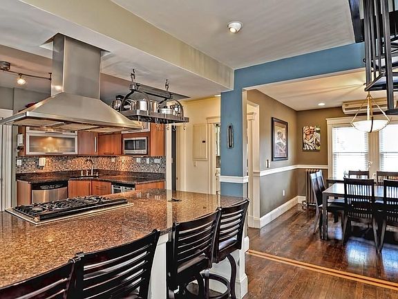 Beautifully renovated in 2005 with attention to detail, this three bedroom home has in-unit laundry, deeded 2-car parking and a spacious & open layout. The kitchen has the perfect balance of stainless appliances, custom cabinetry, & granite countertops. The counter provides a natural bar area great for casual meals, and an additional built-in custom bar provides further opportunities to entertain. The dining room and cathedral ceilinged living room are accentuated by many windows for great light throughout the day. Two bedrooms are on the lower floor, one of them equipped with a child's climbing structure. A third bedroom and walk-in closet is privately tucked on the upper level accessible by spiral staircase. Tons of storage space. Everything you are searching for wrapped into this wonderful home located in West Roxbury at the crossroads of Roslindale & Jamaica Plain making this a perfect choice to enjoy all that these vibrant neighborhoods have to offer.