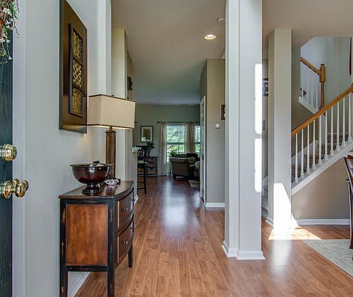 Welcome to this beautiful home in immaculate condition! This is a great home for any family, including open plan, formal dining room and amazing outdoor living space. Situated on a semi-private lot on a pond, the screened-in porch off the eat-in kitchen, allows for extended entertaining. Peaceful, relaxing, outdoor living continues with the extra large patio along the back of the home. This backyard is gorgeous! Inside the laminate wood flooring extends throughout the downstairs. The family room has a fireplace and is open to the kitchen to allow the cook to interact with family. Stainless steel appliance, tall cabinets, lots of counter space and pantry complete the kitchen. The laundry has its own room. Upstairs find 3 bedrooms and large bonus, considered the 4th bedroom.