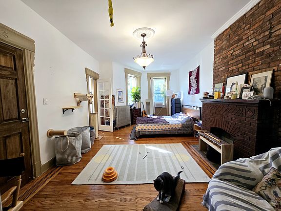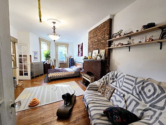 *Dec 1st move in* Limestone Living In Crown Heights! Happy is the best way to describe this sunny full floor home! Top floor *Sun kissed 2 bedroom, 1 bathroom apartment; works best as large 1 bed with a home office / 2nd bedroom* Decorative fireplace XXXL Bedroom Dishwasher Skylight Cats ok Heat and hot water included This charming Limestone apartment has been renovated and showcases a decorative brick fireplace along with bay windows and french doors. The classic floor through layout also gives an option for a dining room. All chefs will love the windowed kitchen, it is spacious and has amazing counter/storage space. There are stainless steel appliances including a dishwasher paired with maple cabinetry and granite countertops. Bathroom is modern and has been nicely renovated. Original hardwood parquet floors and high ceilings are featured throughout the home. Close to: Brower Park, The Brooklyn Children's Museum and all major transportation. Heat & Hot Water included. Cats ok