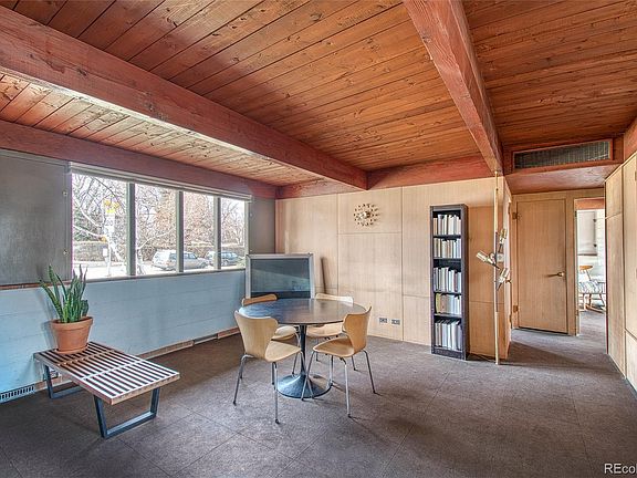 Welcome to the "Kern House", an exceptional example of modernism with stunning linear architecture, located in the famed Arapahoe Acres. This artistic Usonian has vintage charm and retro features throughout with exposed wood beam ceilings, mahogany paneled walls, original light fixtures, floor to ceiling windows, and a family room addition commissioned by the original architect Edward Hawkins himself. The layout compliments nature with ample daylight that showcases the materials complete with FLOR custom tiles. A gorgeous original wood burning fireplace in the master bedroom provides another classic MCM feature, and guides our eye to the windows and connection to the outdoors. The large private backyard has custom landscaping with modern concrete pavers, and a private seating area near the Malm fireplace. The form and function of this clean modernist palette is completed by the stylish orange vintage gate and exterior trees/bushes that are characteristic of Arapahoe Acres. Please enjoy the video link with live jazz performed by co listing agent Jeff Tomlan, and your lead agent, Miss Mid Century Stephanie Kroll as the host! P.S. - If interested in a retro restoration we have a fully intact vintage kitchen from Arapahoe Acres in storage that we preserved from an other home in the neighborhood!