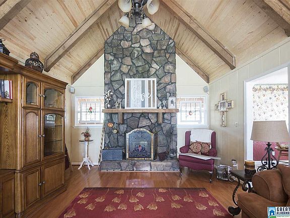 Absolute Gorgeous Home on Large corner Lot, this 3 bed 2 bath home features an A Frame style Great room with tongue and groove pine ceiling, masonry stone wood burning fire place that vaults all the way to the ceiling with exposed beams, hard wood floors through out main level, kitchen with granite counter tops, custom cabinets and tile floor, master and hall bath completely remodeled, Roof replaced 2016, HVAC 4 ton 2017, Cedar shake vinyl siding, all new lighting fixtures, replaced all windows 2004, replaced garage doors and openers 2004, Awning on front of house replaced 2013, screened in deck 2010, storage building stays and has electricity to it, within walking distance to New Hueytown High and school bus picks up at corner in front of house.