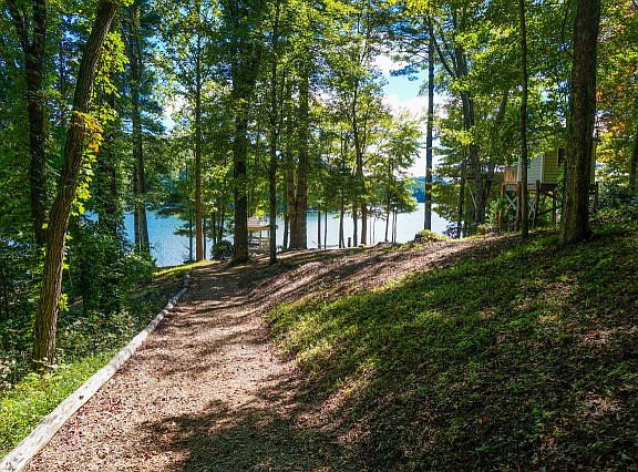 Rare Lake Front Home Property with 1.40Acres and Approximately 250ft of Gorgeous Lake Frontage, in the gated community of Glenshore. Updated and Well maintained home offers 2bdedrooms/2bathrooms on the main, great chefs kitchen with Viking appliances which flows into the dining and living room. There is direct access from the living room and master to the covered deck for outdoor living space. As you venture upstairs, there is a spacious living loft with additional sleeping quarters and bathroom. Lower level offers a living/entertainment room, bedroom and 2 full baths with direct access to the lower deck. Stepping down to the lake your greeted with a wide and very gentle path to the well manicured lake front portion of the property which offers fun for all ages...Taking in the 180 degree lake views from the lake front Gazebo, or a nap in the lake front hammock, to enjoying the fall days and colors by the lake front fire pit or flying high amongst the trees in the lake front Tree House. Don't forget the Private Dock to enjoy all your lake front toys, makes this the right lake front property for all your family and friends.