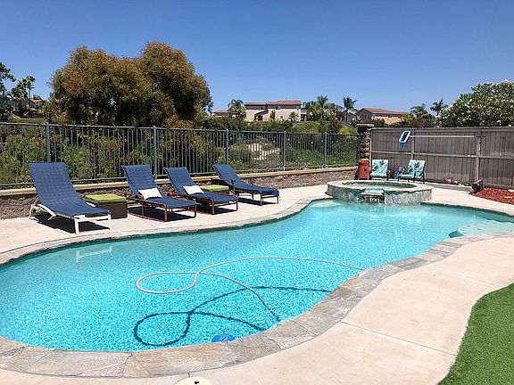 5 bedroom, 3 bath, new granite counters, stainless steel sink, 30ft pool with attached 6 person jacuzzi and small water fall, cement and artificial turf surrounding area. Deep driveway ascending to 2 car garage.