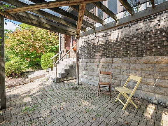 Charming 4-bedroom, 1.5-bath home on a dead-end street in lovely Regent Square, close to Frick Park, the vibrant business district, & easy access to 376/Downtown. Inviting covered front porch & front patio pergola for warm welcomes & outdoor relaxation. Inside find a spacious living room with hardwood floors & a beautifully redone decorative fireplace. Adjacent is a cozy sunroom perfect for a home office. The living room seamlessly flows into the dining area, creating an ideal space for entertaining. The updated kitchen has a pass-through to the dining room, allowing you to engage with your guests. Sliding glass doors lead to a rear deck & private fenced backyard. Plus 1st fl powder room. Basement offers laundry & lots of storage. 2nd floor has 2 bedrooms, full bath, & den/family room area. The 3rd floor offers two bedrooms. Updates include efficient mini-split HVAC systems, a newer roof, and newer water heater. A dedicated off-street parking spot at the rear of the property.