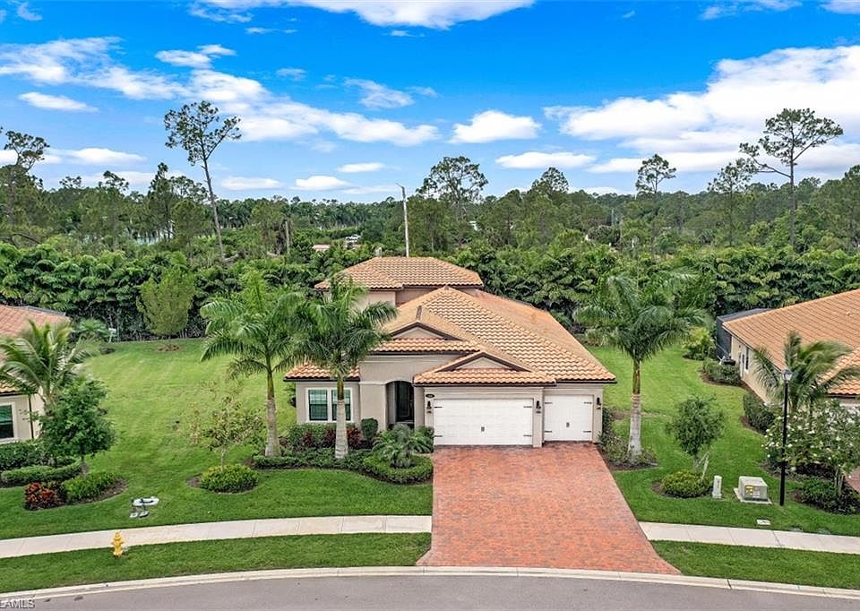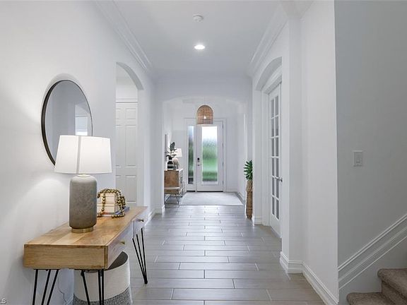 This spacious 3 Bedroom+Den+Loft, 4 Full Bath, 2 Half Bath, 3 Car Garage home is situated on a private, oversized pie shaped lot within Mockingbird Crossing, a quaint gated community of only 110 homes in popular North Naples. This light and bright home features 3,148 Sq Ft under air and 4,261 sq ft under roof. From the moment you walk in the door, you are greeted with crisp white walls throughout, oversized crown molding, luxurious wood look tile floors, painted cabinets with quartz countertops, custom wood work, wallpaper accents, high end chandeliers/fixtures, and sleek modern bath hardware. On the ground floor you will find all the common areas and bedrooms while the loft is tucked away upstairs with its own private full bath, making this a great TV/Bonus/Play room or an extra bedroom suite. The covered lanai lends itself to entertaining with a 452 sq ft of covered area, outdoor kitchen, private pool bath, and ample room for sunbathing. HURRICANE IMPACT WINDOWS & DOORS! Mockingbird Crossing has LOW HOA FEES of just $333/month which includes lawn care, irrigation water/system maintenance, trimming, and mulching. You are just 5 min from Founders Square and 10 min from I75.