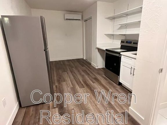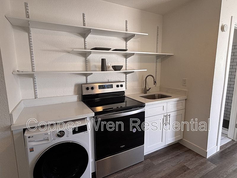 Furnished Studio. The home has been renovated with stainless steal appliances, and in unit all in 1 washer/dryer. The home comes with a Twin XL. Kitchen has dishware. The home has a private fenced in front patio. Pets are welcome with an extra fee. What to Know: *Income 2.5x Rent *Must pass background, eviction and credit check *No smoking *Minimum Lease Term is 6 months Other Fees: Security Deposit: $500* Water/Sewer/Trash/Electric: Included Application Fee: $50 per adult Non-Refundable Administration Fee: $150.00 Renter's Insurance Required *Copper Wren Residential is proud to offer deposit-free living to qualified renters through Obligo! We understand that moving costs can add up, so we want to extend financial flexibility to our residents. When you move in with us, you can skip paying a security deposit and keep the cash for activities you care about. Learn more about the benefits of deposit-free living with Obligo's brochure or on their website.