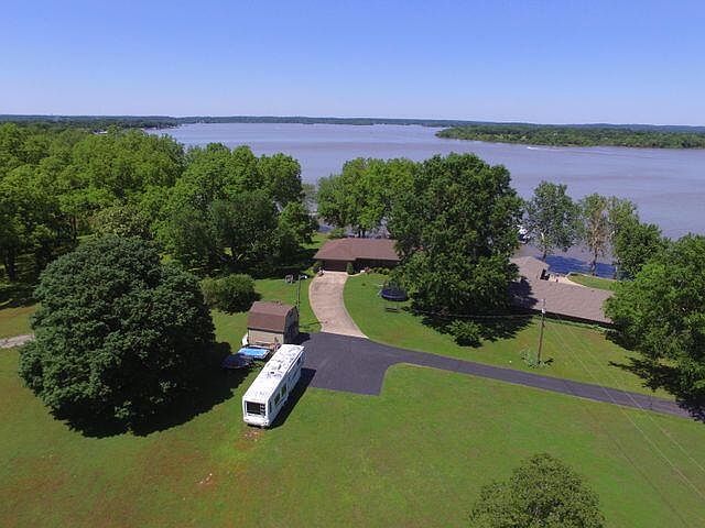GRAND LAKE FRONT, WOLF CREEK (where festivals, fishing tournaments, fireworks & sunrises happen) NO HOA, VRBO OK, spacious home w/ BRAND NEW 54x38 BOAT DOCK, PRIVATE BOAT RAMP, LARGE FLAT YARD, deck, RV space, & storage barn! Home has an open vaulted beamed living w/ FP, open dining/ kitchen w/ granite, pantry & newer SS appliances. Deck and patio w/spectacular lake views. Main level has 2 beds, 2 full baths. Full finished basement has 2 beds, 1 bath, family rm, kitchenette & storage. Newer HVAC. Wood & tile floors. Large front yard is flat & cleared for shop, guest house, whatever you dream. Located in Grove City limits, 1 minute to dining, shopping, entertainment & necessities. Gorgeous water & Sailboat Bridge views! Could easily be a 2 family home w/ plenty of space to grow. LOOK!