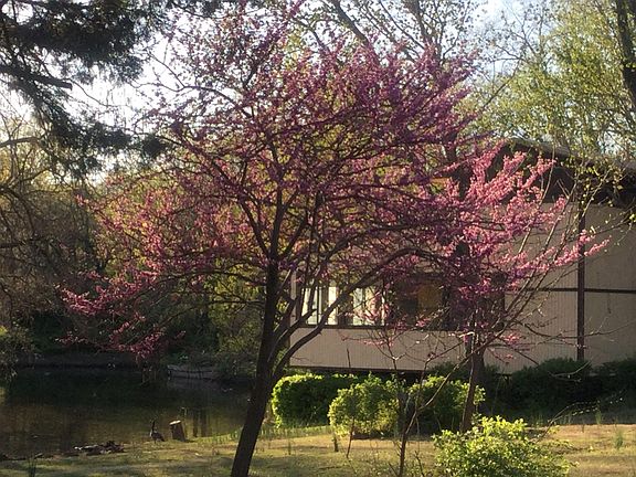 Unique style home located on a peaceful pond with wildlife (geese, ducks, turtles, deer, rabbits, raccoons, fox, owls, hawks, etc). 2 car garage, shed, under house storage (for outside toys). 4 bedrooms, 1 office, 3 full bathrooms. Sunroom with South facing windows (for growing plants that need lots of sunlight), spacious rooms with walk-in closets, bathtub downstairs, open concept living room/kitchen with large windows and serving bar that overlooks pond, and a large walk-in pantry. Backyard has space for small garden, and backs up to wooded area. Walking distance to grocery/post office services/stores. Beautiful, quiet, and peaceful neighborhood. Handicap accessible. 1.5 Hours drive from Tulsa, OkC, and Wichita. Tenant pays all utilities. First month's rent, last month's rent, and $500 deposit required for move in. $250 deposit per pet. Zero tolerance for extremely loud music, vehicles, or behaviors. 1 year lease term negotiable.