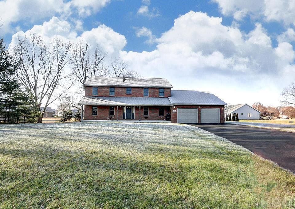 Nestled down a private driveway on a 1.6+ acre lot with mature trees, this two-story brick home is a rare find in town! This home offers multiple living areas including a family room, living room, and a formal dining which could be used as an office or play room if preferred. The kitchen features stainless steel appliances, breakfast bar, built-in desk, and dining area. The kitchen is open to the family room with gas fireplace, making it a great space to spend time. The master bedroom offers a private bath with two walk-in closets and double bowl vanity. The basement has a half bath and provides great storage or could be finished for more living space. The attached two-car garage has a bonus storage/workshop area. A detached garage offers three bays, covered patio and 570sf apartment with separate heating/cooling system, living room, bedroom, full bath, laundry and kitchenette with all appliances. Other features include: covered patio, porch, whole house generator, invisible fence, gutter guards, high efficiency furnace, and security system.