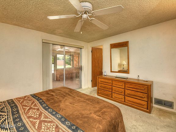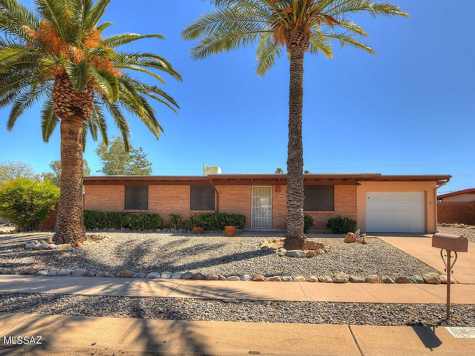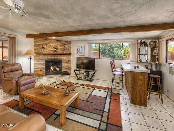 Light and bright ranch-style home in an east side cul-de-sac. 3 bedrooms & 2 bath brick home. The Living room flows into the Dining area & open Kitchen. Family room, perfect for entertaining, has a bar and a wood burning fireplace. Primary bedroom includes private bathroom with walk-in shower. You will enjoy the AZ room looking out to the large yard with views of the Catalina and Rincon Mountains. Paver patios, a Spa plus lemon & orange trees complete the backyard. Workshop behind the garage plus an additional Storage shed. 1-car garage. Move-in ready. No HOA. Space available for RV parking in back through double gate. Good location close to parks, Rolling Hills Golf Club, The Loop biking path, shopping & more.