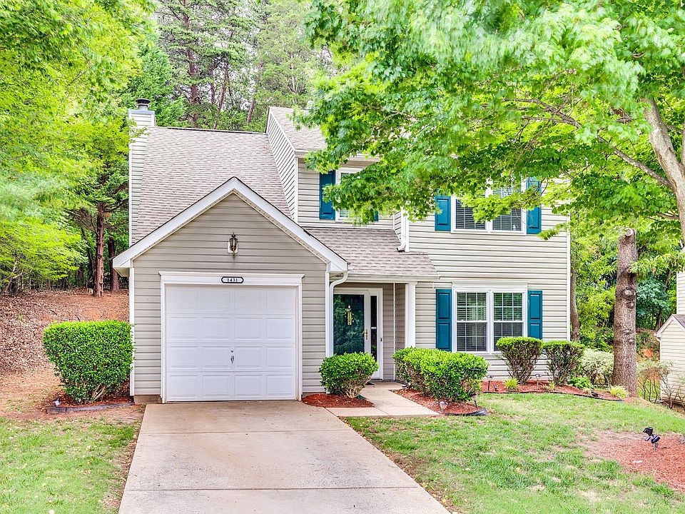 Beautiful 3-bed, 2.5 bath home in the heart of Lake Wylie Forest Oaks community! Well-maintained home with a Den/Dining room on the right as you walk in on the main. Then a family room with a wood-burning fireplace that opens to the kitchen across the back of the home. LVP flooring throughout the main floor and bathrooms. All three bedrooms are on the upper level and have plush carpeting. The primary has a high ceiling, an ensuite bath with a garden tub and separate step-in shower, A long dressing vanity with a makeup area. There are two more nice-sized bedrooms with high ceilings that share a full hall bath. The patio in the back is nice with trees backing up to the property, great for relaxing after a long day. Washer/Dryer is included in the laundry room on the upper level. Pets conditional. **No Cats**. The garage door is manual, not electric. This home is close to shopping and fine dining with highly rated schools!