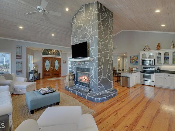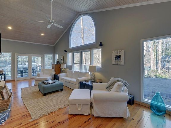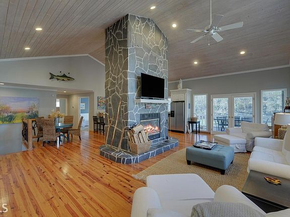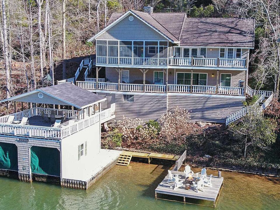 Spacious home only steps to Lake Rabun! This 4 bedroom plus a bunk room, 3 bathroom home is ready for you to enjoy this spring! The main level features a bright and open living space surrounding a beautiful rock fireplace. Off of the living area is a screened porch overlooking Lake Rabun with enough space for dining and entertaining. Also on the main level is the master bedroom with attached laundry, guest bedroom, and full bath. Downstairs you walk into another open living space with a stone fireplace, 2 guest bedrooms, a bunk room, and a full bath. Sliding glass doors will lead you to a large covered porch area that leads to the 2 story, 2 stall boathouse. You can also enjoy an evening fire on the stationary dock while enjoying the quiet area of Lake Rabun! Much of the home has been renovated and exterior features low maintenance materials so you can spend more time on the water. This property is ready to enjoy today.
