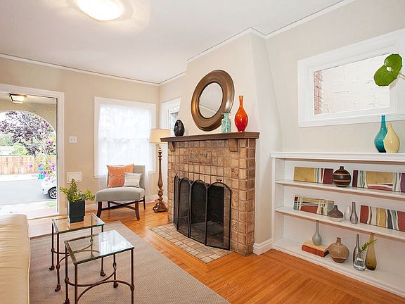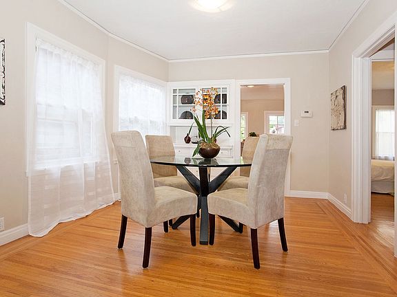 This adorable, very sunny home is located in the premium Thousand Oaks neighborhood, close to Albany's excellent public schools, a beautiful community park, and Solano Avenue shopping. - Built in 1928, with period details, 2 bedrooms, and 1 full bathroom - Detached cottage in rear yard with studio/workshop plus storage - Remodeled kitchen with breakfast bar, gas range, and laundry alcove - Formal dining room with graceful arched opening to living room - Ornamental fireplace with wood mantle and Arts-and-Crafts motif tile - Vintage built-in cabinets and unusual matchstick-style hardwood floors - Attached garage, plus parking in driveway and plenty of street parking - Private, fenced yard with brick patio, new lawn, and raised planting borders - Sweet front porch with space for bench to relax and watch the world go by - Very close to Memorial Park, Albany High School, and Solano Avenue