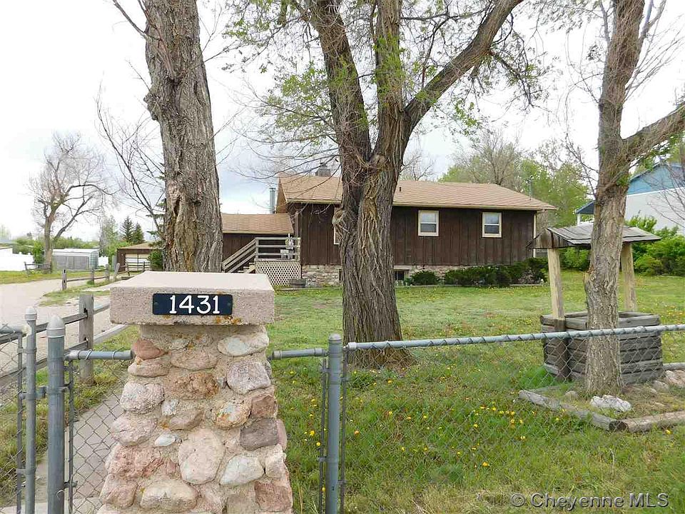 Wow check out the location of this One Plus Acre Property. Easy access to I-25 and I-80. 4 Bedroom home with updated kitchen, newer flooring, newer carpeting in bedrooms, updated bath, newer furnace, newer hot water heater and large private deck off back of home with mature landscaping. L shaped lot for Horses or Extra Outbuilding... 2 Car Detached Garage. Loads of Potential and Possibilities for this great property. Being Sold "As is-Where is".