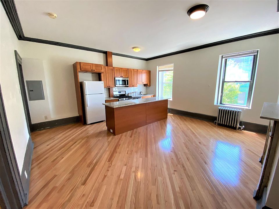 Welcome to 1431 W Girard Ave #2F! This is a unique and very well kept move-in ready 1 bedroom 1 bath apartment style home. This spacious and inviting unit offers a living room/dining room flex layout with ample cooking and cabinet space in the modern kitchen, as well as a large bedroom with a sizable closet. Natural light streams in through windows at both the front and back of the home, creating a pleasant and bright atmosphere. You are sure to enjoy the many cool design features -- a long, private foyer, classic hardwood flooring throughout, granite countertops, sleek kitchen design, crown molding across the entire space, an ornamental fireplace with a marble ledge and a stylish bedroom ceiling light fixture. The bathroom offers a tub/shower combo as well as a vanity with a storage space and mirror above. The mini split heating and cooling system is sure to keep you comfortable all year round. There is also radiator heat for added warmth in the cooler months. At great value, note that the rental price includes water, hot water, and cooking fuel (gas). Tenants will pay their own electric. Pets will be considered on a case by case basis. Tenants are allowed use of the common laundry in the basement area. Don't delay, your new rental home is just a few clicks away. At great value, note that the rental price includes water, hot water, and cooking fuel (gas). Tenants pay electric. Pets considered on a case by case basis.